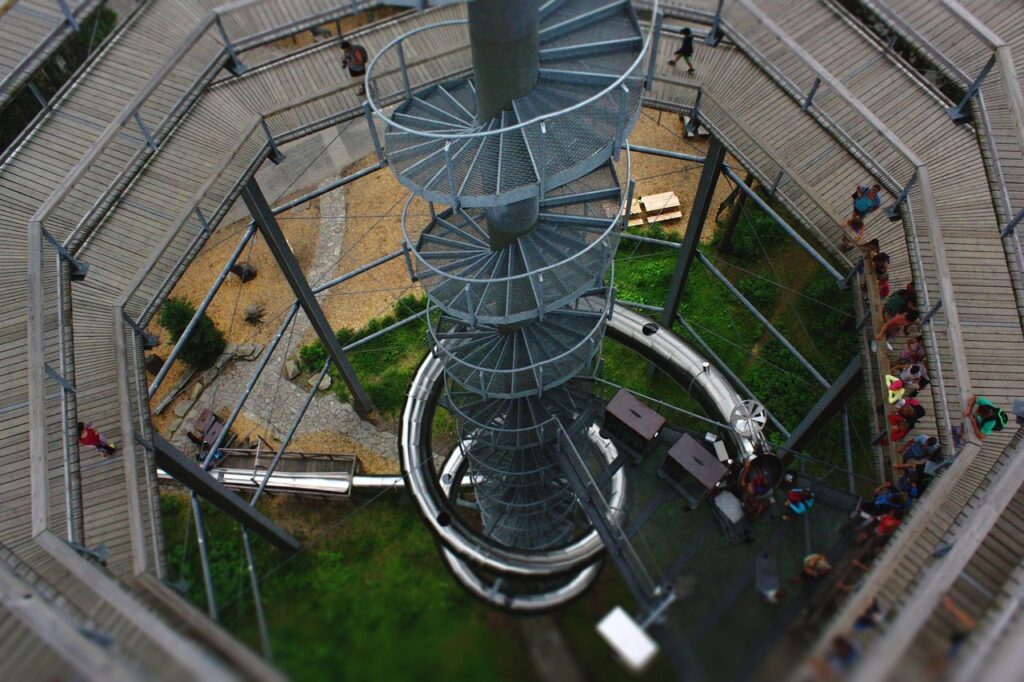 - המגלשה האלפינית: המגלשות הצהובות הן מגלשות מודרניות הנעות על גבי מסילה קשיחה. הן נחשבות לבטוחות מאוד בזכות חגורות בטיחות ובלמים אוטומטיים – מה שהופך אותן לפופולריות במיוחד בקרב משפחות עם ילדים קטנים למרות (או אולי בגלל) שהן עושות סיבובים של כמעט 360 מעלות.